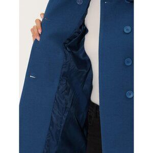 Women's Dark Grey Blue Peter Pan Collar Double Breasted Winter Long Trench Coat