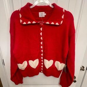 VALENTINES HEART CARDIGAN SWEATER! Peter Pan collar, pockets, quality!!! Adorable