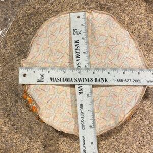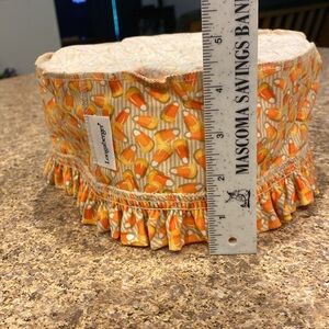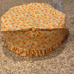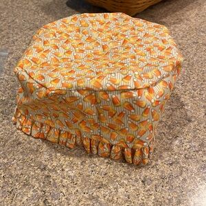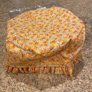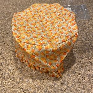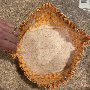 NIP- New in Plastic Package. Longaberger Candy Corn Darning Liner 2553477 Halloween. Orange. This was taken out of its package a few times so it’s been handled but it hasn’t been used in a basket. This is Vintage so it has age and has been stored so there may be minor imperfections. This is made to fit a Longaberger Darning Basket. My measurements are very rough to give an idea of size but it’s very difficult to get good measurements. Some pictures of liner may have fabric folded. Colors may be off because of lighting. It is wrinkled.