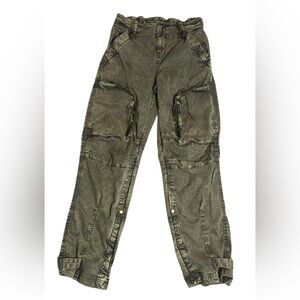 Vintage-inspired wash throughout, cargo pockets, smocked waistband, zippered detailing throughout