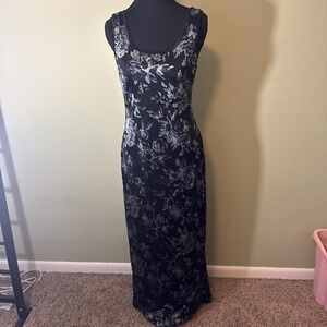 Vintage 90s Y2K Rampage Dress Black Floral Mesh Maxi Boho Retro Prom Goth Small