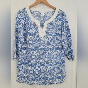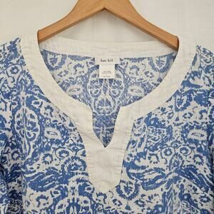 Kate Hill Linen Tunic Womens Large Coastal ¾ Sleeve Beach Lagenlook Nautical