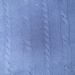 Elevate your wardrobe with this classic blue cable knit sweater. Perfect for layering and versatile for any occasion.
