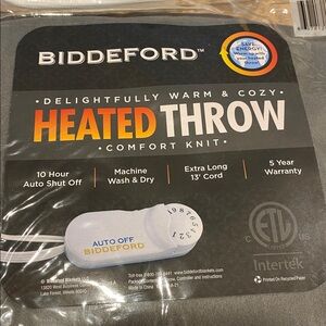 Reduced for Flash Sale-Price Is Firm. NIP New in Plastic Package Biddeford Heated Throw. I believe the color is Gray but I have a hard time with colors and could be wrong. Comfort Knit. Auto Shut Off. This is in its original packaging but there isn’t a price tag. I bought this new many years ago but we received a similar one as a gift around the same time so we never used this one. It has been opened partially to look at a few times and again to take some pictures. The packaging isn’t perfect from being moved around a lot and from being stored. I never fully opened this as I knew if I took it all the way out to photograph that I would never get it back in the package. I can see that there are some minor imperfections. Since we never fully opened it, I can’t guarantee that it’s perfect and that the size is that they say it should be. There may possibly be other imperfections than what are photographed. Colors may be off because of lighting. Bundle with other items from my closet and only pay 1 shipping fee up to 5 lbs packaged.
