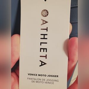 NWT Athleta Venice Moto Jogger. Blue. Size 3X. Plus size. 27" inseam. Soft and stretchy fabric.. Elastic waistband. 2 front zip pockets and 2 back zip pockets. See pictures for measurements. No stain, no hole. Non smoking house.