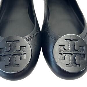 Tory Burch Minnie Black Travel Ballet Flat in Napa Leather w Black Logo Size 6