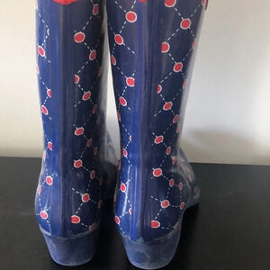 Great condition! I fell in love with these boots because they were so different. They've been worn less than 20 times but definitely show normal wear. Still ready for someone to jump around in a puddle on a rainy day.