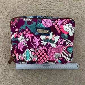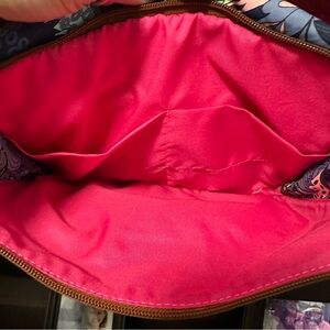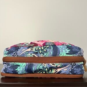Chic Maaji cosmetic bag with floral design. Ideal for organizing beauty essentials and travel. Has 2 separate zippered compartments and several small pockets within each compartment. Great for makeup.