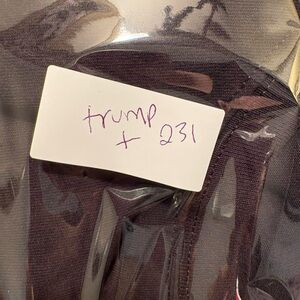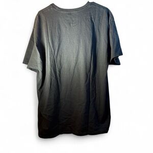Preowned XL black cotton T-shirt featuring a Trump border wall construction company political graphic. The item is described as preowned has some small marks