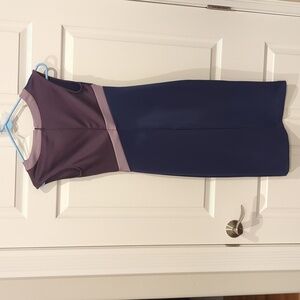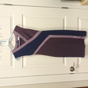 New York & Company pencil dress. Very soft, stretchy and flattering. Light purple, dark purple, and dark blue. Center back zipper