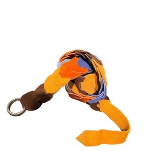 Braided multicolor suede belt w linked ring details + boho statement vibe.