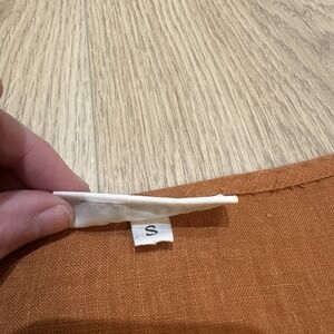 The Bryn Walker Naida Tunic Dress in size S is a stylish and comfortable option for a relaxed, artsy look. This oversized, asymmetrical dress features a boat neckline, 3/4 sleeves, and a pullover closure for easy wear. Made from lightweight linen fabric, it is perfect for summer, fall, and spring seasons. The orange color and solid pattern give it a vibrant and classic appeal, suitable for casual outings or travel adventures. With its trapeze and swing style, this dress embodies a hippie, bohemian vibe that is both trendy and timeless.