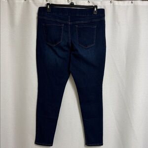 This is a pair of Pre owned Nine West, in EC, Heidi pull on skinny jeans. Size 16. Faux front pockets & 2 slide in back pockets. Waist measures 17.5” relaxed & 20” stretched. Inseam is 28” & rise is 12”. Fabric content is 59% cotton,24%viscose, 19% polyester & 1% spandex.