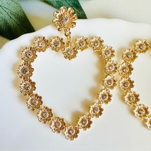 2/$30🌵 Gold Flower Rhinestone Heart Earrings Bohemian Boho Jewelry Gift NEW