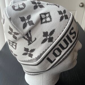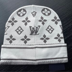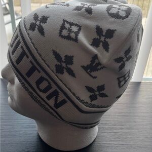 White and gray Monogram Beanie
