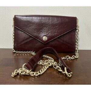 REBECCA MINKOFF vintage envelope clutch crossbody burgundy leather with chain strap