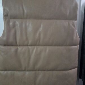 Vegab leather puffer vest in a pretty camel beige color. Chic and cozy puffer vest. Ideal for layering. Features a sleek design. made in Vietnam