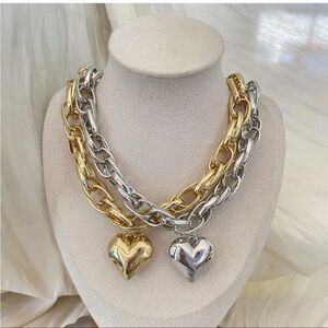 🌟SILVER Chunky Heart Pendant Choker Necklace🌟NEW Costume Jewelry