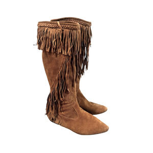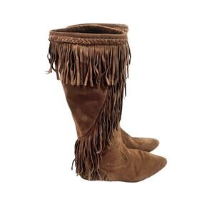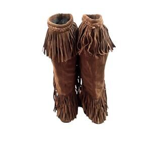 Sam Edelman Utah Brown Suede Fringe Moccasin Boots Mid-Calf Pull On Women’s 8