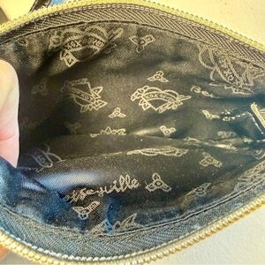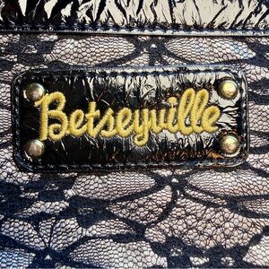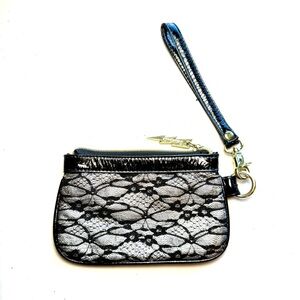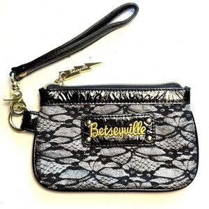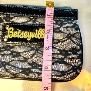 Betsey Johnson Black Gold Patent Lace with Stud Detail Zip Wristlet Betseyville