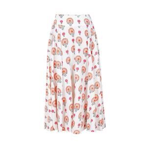 Malie Organic Cotton Dolce White Pink Print Midi Skirt UK 10 US 6