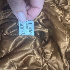 Double breasted closure at front with leather covered buttons