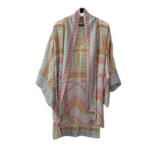 BCBG MaxAzria Kimono Aqua Mst C Blue Orange Pink XS/Small Geometric Open Arm Midi Length Beach Cruise Travel Vacation