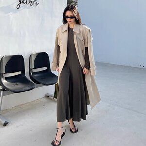Elevate your wardrobe with this CHICJOC minimalist dress, crafted from premium eco-friendly viscose imported from Japan. Designed with a contemporary Row-inspired silhouette, this dress effortlessly blends comfort and elegance. Its ultra-light, paper-thin drape flatters the figure with a sleek, airy fit, making it perfect for warm days or layering during transitional seasons.