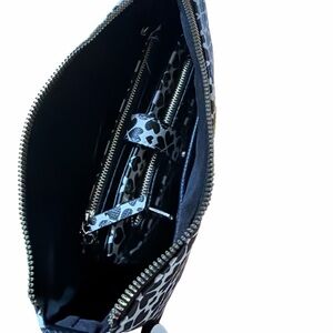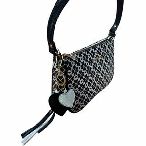 Add a touch of playful sophistication to your wardrobe with this gorgeous Nanette Lepore Rayza Print Baguette and matching Lilli Wallet set. This duo features a striking black and white "Heart Geo" pattern that is both modern and romantic.