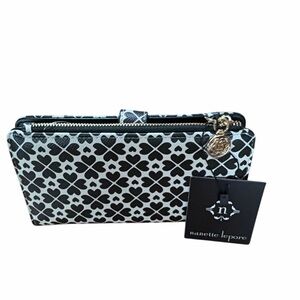 NANETTE LEPORE Fiona Logo Heart Geo Baguette Black Bag w/ Card Wallet Set