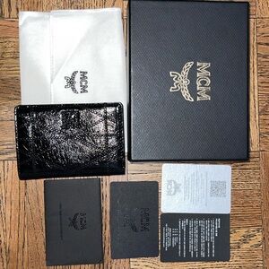 MCM Travia Quilted Card Wallet In Crushed Black Leather NWT Full Inclusion