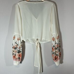 SHEIN cropped V neck peasant blouse. Front tie. Pretty floral on bishop sleeves. Like new condition.