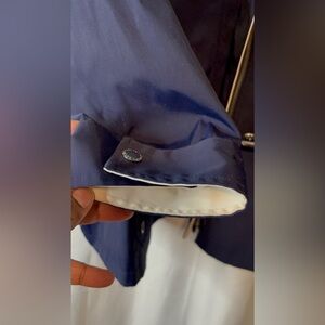 This vintage Lauren Ralph Lauren jacket is perfect for any occasion, whether you're traveling, partying, or just going casual. The navy blue color and nautical theme make it a great addition to any wardrobe. The jacket is made of nylon and cotton, with a fireman clasp and zip closure for added style. Fisherman