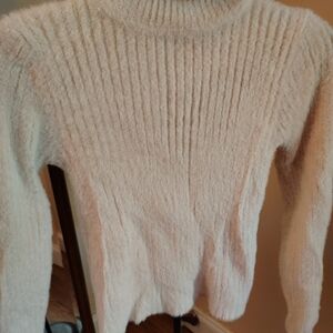 SHEIN L Cream and white fuzzy turtleneck jumper #winterknitsrtleneck sweater. Perfect for any occasion.