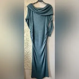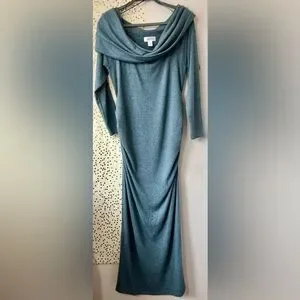 Motherhood Heathered Blue Cowl Neck Long Sleeve Dress size Large
