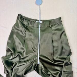 Aritzia Babaton Outgoing Olive Green Satin Cargo Pants High Rise Relaxed Leg Women’s 8