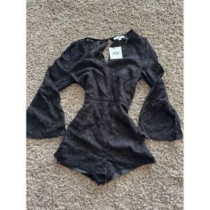 JACK by BB Dakota Black Lace Romper Bell Sleeve V Neck Size 0 NWT
