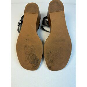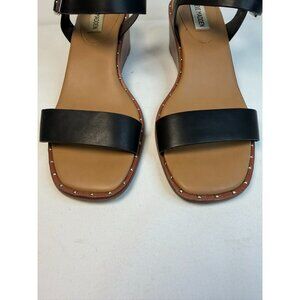 Steve Madden Ares Black Leather Studded Ankle Strap Wedge Sandals Women Size 9M
