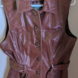 Stylish and durable brown leather vest for women, perfect for layering and adding a rugged touch to any outfit. pit to pit 18, lenght 24