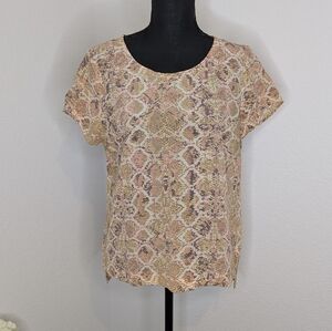 100% silk blouse with pink snakeprint. Back zipper. Like new condition. 25"in length. 19.5" pit to pit.