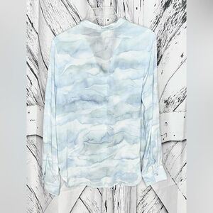 Bella Dahl Capri Button-Down Shirt, the perfect addition to your wardrobe for effortless style. This shirt features a trendy Waves Camo print with a spread collar and button cuffs for a chic and modern look. Made with 100% Rayon, this shirt is semi-sheer. The button front closure adds a touch of sophistication to this versatile piece. Machine washable