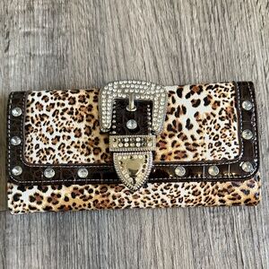 Leopard Print Wallet with Rhinestone Buckle