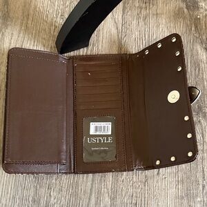 Chic leopard print wallet adorned with a sparkling rhinestone buckle. Ideal for adding a touch of elegance to your ensemble.