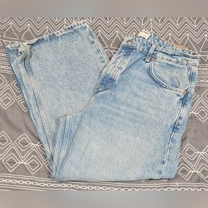 Great condition. Amazing brand. Size 33. Straight leg style. Distressed and a couple patch style details. Button fly. Medium wash denim with whiskering details and white washing. Measurements and fabric content listed above in pictures.