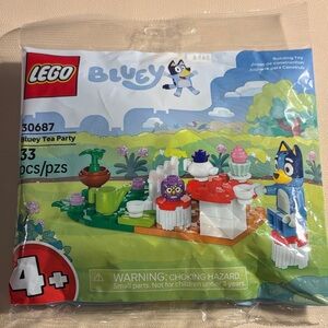Enjoy a fun tea party with Bluey using this LEGO set. Includes red, green, and white blocks for imaginative play.