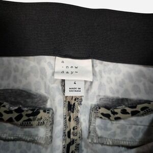A New Day Women's Leopard Print Skinny Pants Size 4 Black White Stretch Trousers