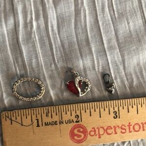 BAUBLEBAR & handmade necklace pendants charms with faux diamonds & ruby lot of 8. 1 purple grape pattern, 1 single faux diamond, 1 circular mini diamonds, 1 purple heart diamonds, 1 ruby & diamond heart, black circle pendant with daisy, BaubleBar "B" with tiny opals, 1 long shiny pendant. Great for making jewelry or adding to your own necklaces