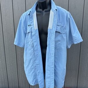 Dri Duck Mens Blue Short Sleeve Fishing Shirt Vented Ripstop Round Valley Rock