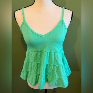 American Eagle Green Sleeveless Ruffle baby doll Top