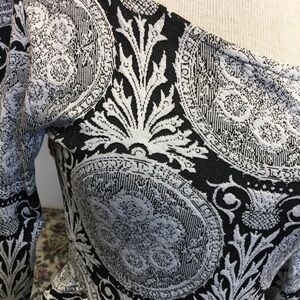 Gorgeous black and white ornament print skater dress with long sleeves. This dress has a great stretch to it and measures 24 inches in length.